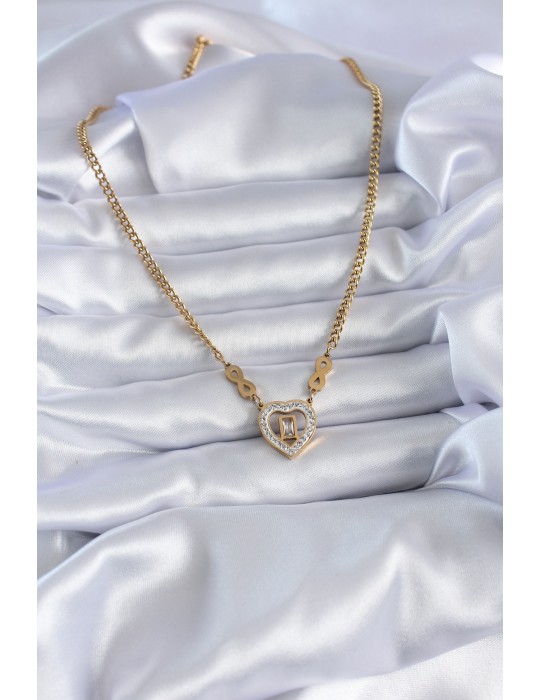 316L Çelik Gold Renk Zirkon Taşlı Kalp Model Sonsuzluk Detay Kadın Kolye - TJ-BKO7789