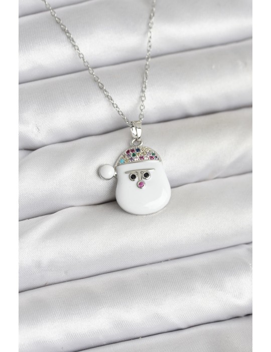 316L Çelik Zincir Gümüş Renk Şapkalı Kardan Adam Kafası Model Yılbaşı Temalı Kadın Kolye - TJ-BKO10705