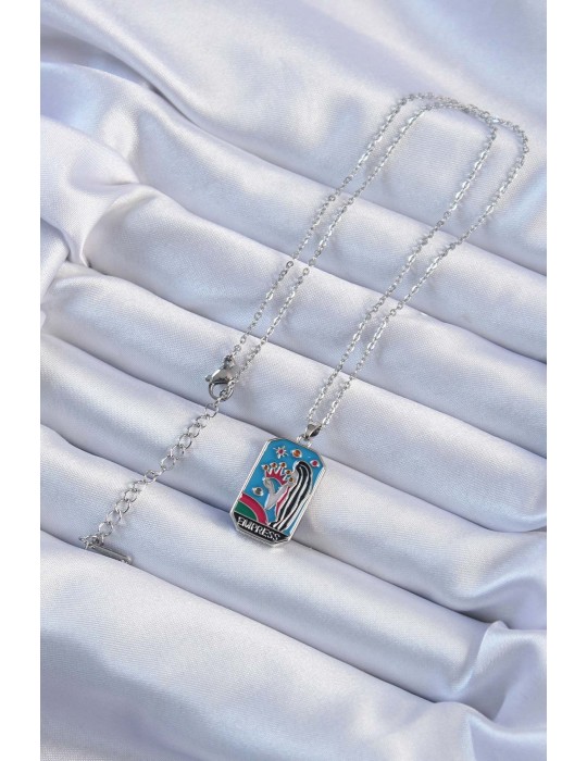 316L Çelik Zincir Gümüş Renk Taç ve Kız Figürlü Renkli Mineli Tarot Kolye - TJ-BKO9230