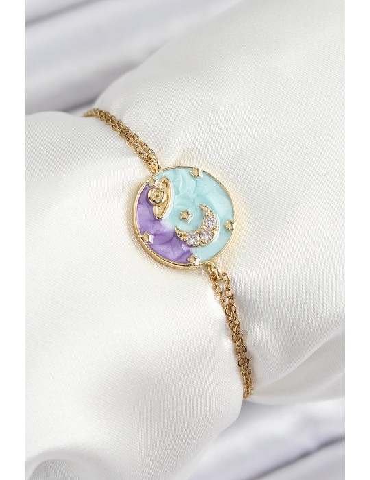 316L Çelik Zincir Mineli Sanatsal Portre Zirkon Taşlı Gezegen Model Gold Renk Kadın Bileklik - TJ-BB7233