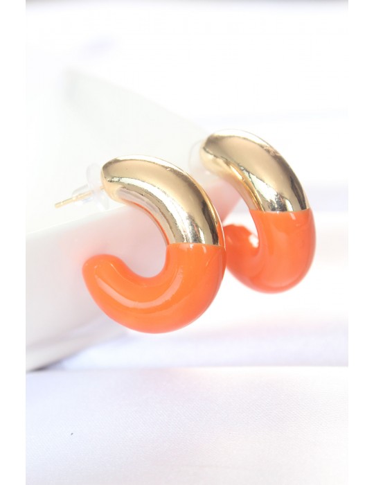 CCB Turuncu Gold Çift Renk Küpe - TJ-BKP8873