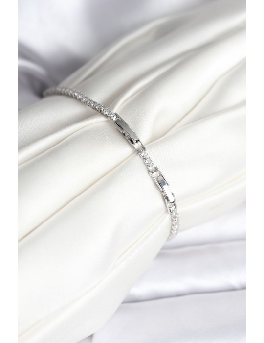 Çiçekli Model Zirkon Taşlı Gümüş Renk Su Yolu Kadın Bileklik - TJ-BB8111
