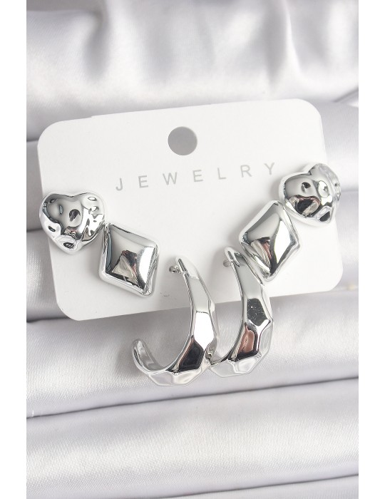 • Gümüş Renk Kalp Halka Figür CCB Plastik Kadın Küpe Seti - TJ-BKP10019
