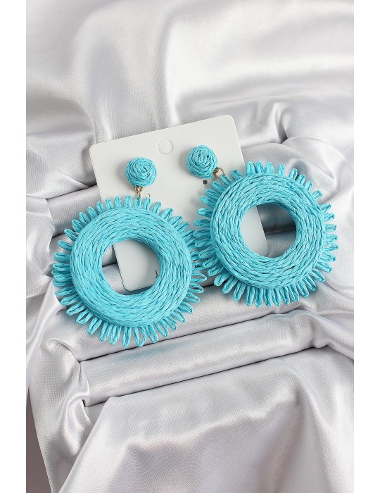 • Mavi Püsküllü Halka Figürlü Hasır Örgü Model Gold Renk Kadın Küpe - TJ-BKP10709