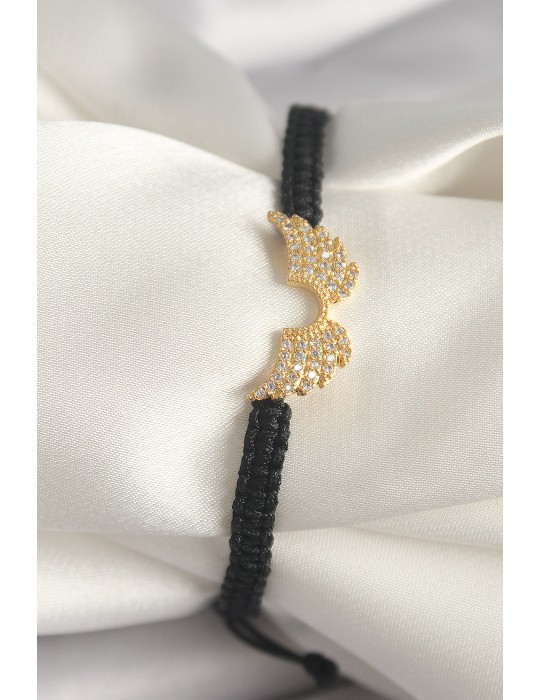 • Pirinç Gold Renk Zirkon Taşlı Kanat Figür Asansörlü Makrome Model Kadın Bileklik - TJ-BB6803