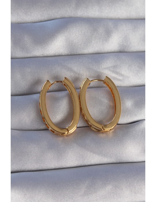 Pirinç Gold Renk Zirkon Taşlı Oval Model Küpe - TJ-BKP9079