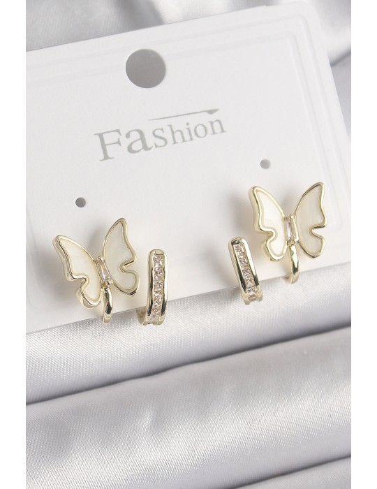 Pirinç Gümüş Renk Zirkon Taş Detaylı Beyaz Sedefli Model Kadın Küpe - TJ-BKP9868