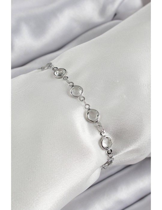 Pirinç Gümüş Renk Zirkon Taşlı Bileklik - TJ-BB7044
