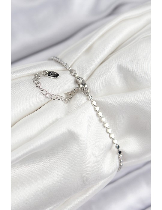 Pirinç Zirkon Taşlı Dikdörtgen Model Ezme Zincir Gümüş Renk Kadın Bileklik - TJ-BB7594